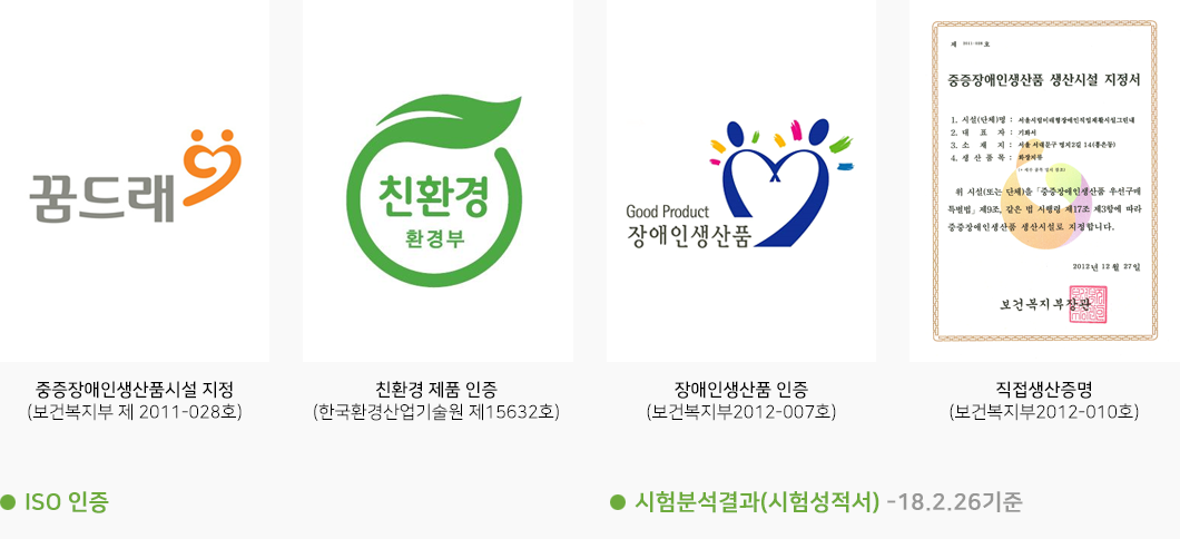 – 환경인증사유 : 자원절약 및 수질오염물질 저감 / 고지사용률 100%, 형광증백제 및 염소산 물질 미사용